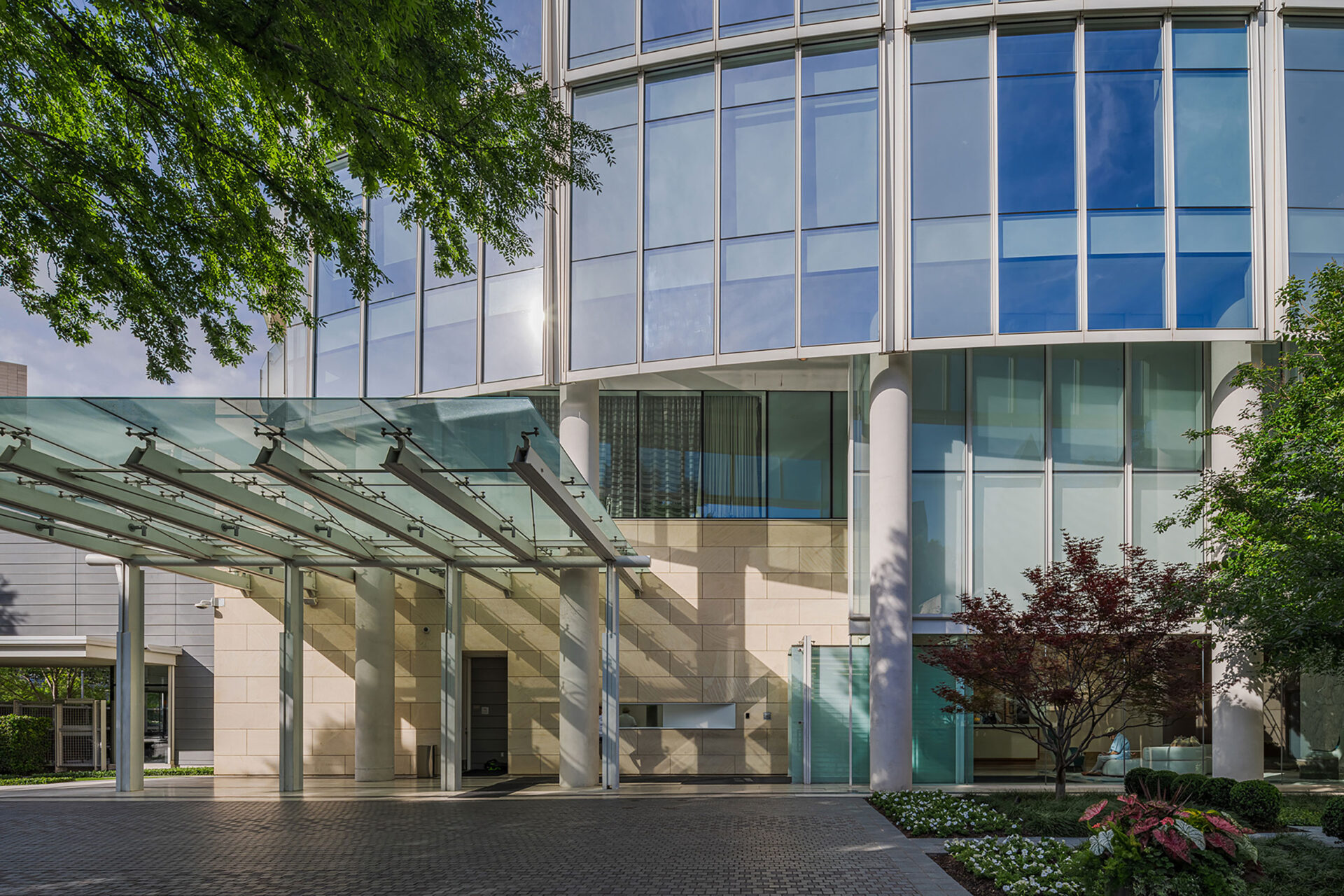 The glass facade is complemented by a subtle grid pattern of vertical and horizontal mullions, adding a layer of texture to the surface and enhancing the tower’s visual depth. This careful interplay between transparency and reflectivity allows Museum Tower to harmonize with its surroundings while maintaining a distinctive identity.