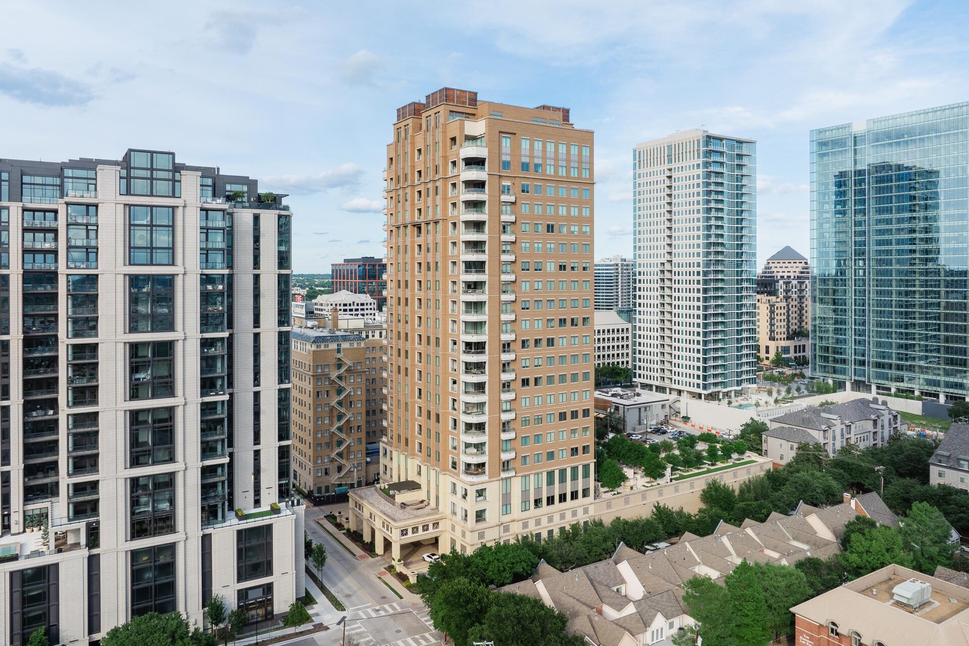 Residences at the Stoneleigh is an exclusive residential tower located between historic Turtle Rock and Uptown Dallas, Texas. As one of the only for-sale high rises in the area, KTGY’s designers gave the tower an elegant and understated architectural skin to house premium amenities and the homes of a clientele accustomed to hiring their own interior designers and architects. Responding to the historic hotel next door, Stoneleigh matches its tone with translucent panels that make the crown glow at night. Traditional and classical elements come together with a bit of art deco in a style in tune with the neighborhood but more common in Manhattan and The Loop.