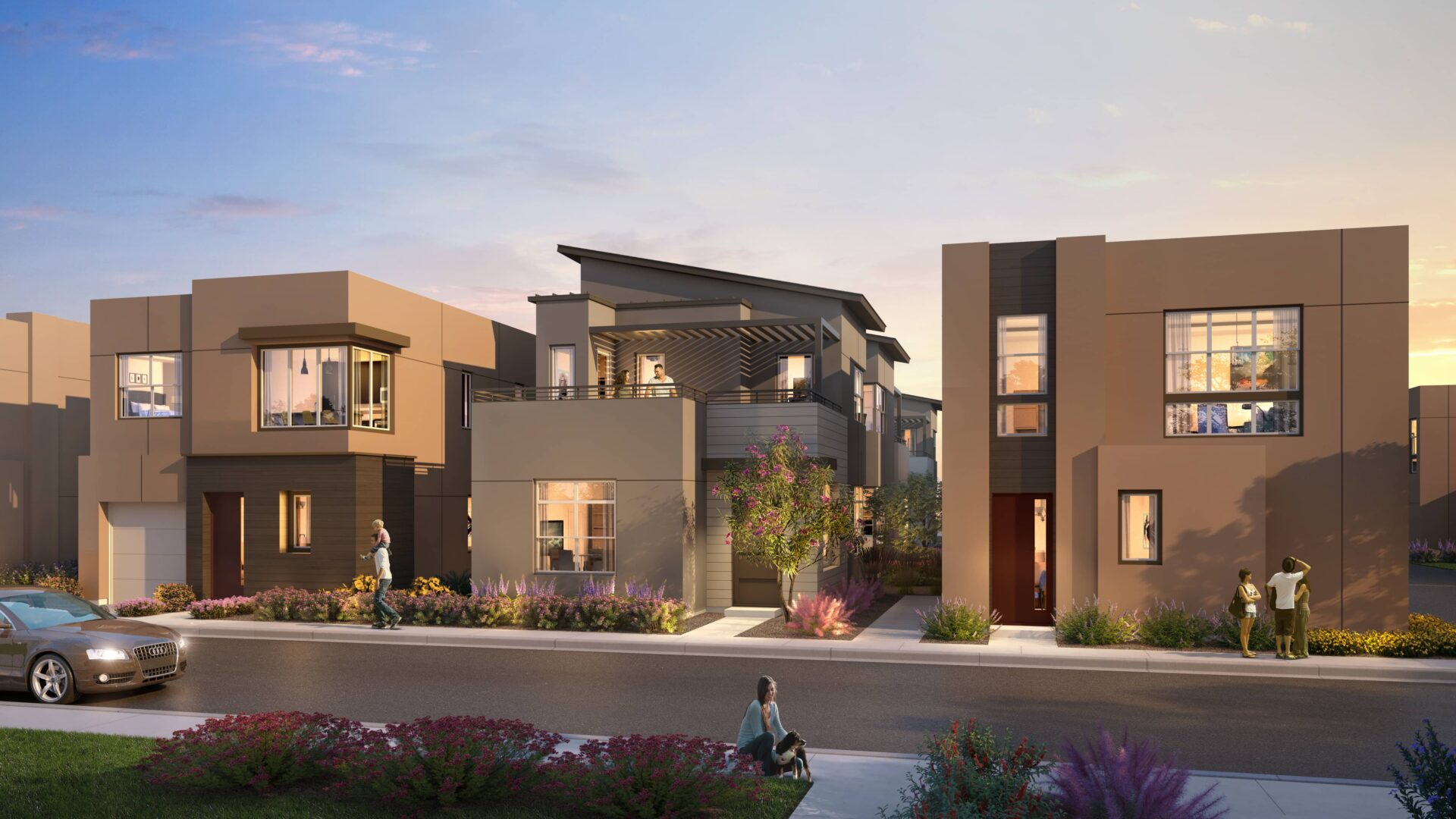 Summerlin, Nevada is a planned community that shows a different side of Las Vegas. With the Spring Mountains as skyline and Red Rock Canyon as neighbor, this place draws anyone wanting a taste of outdoor lifestyles without sacrificing the excitement of a major city metro. The Loughlin is a community for new or established Nevadans that communicates a local’s eye for Las Vegas, and KTGY’s contribution as architect is to capitalize on our client’s site in an underutilized location. Our team designed more than one hundred homes just a stone’s throw from downtown Summerlin. The modern influences of this detached condominium community indicate the seamless living that entry-level owners want. Modern facades in three elevation styles create a consistent but interesting flow of houses along safe and quiet neighborhood streets that connect to Summerlin’s greater flow of activities.