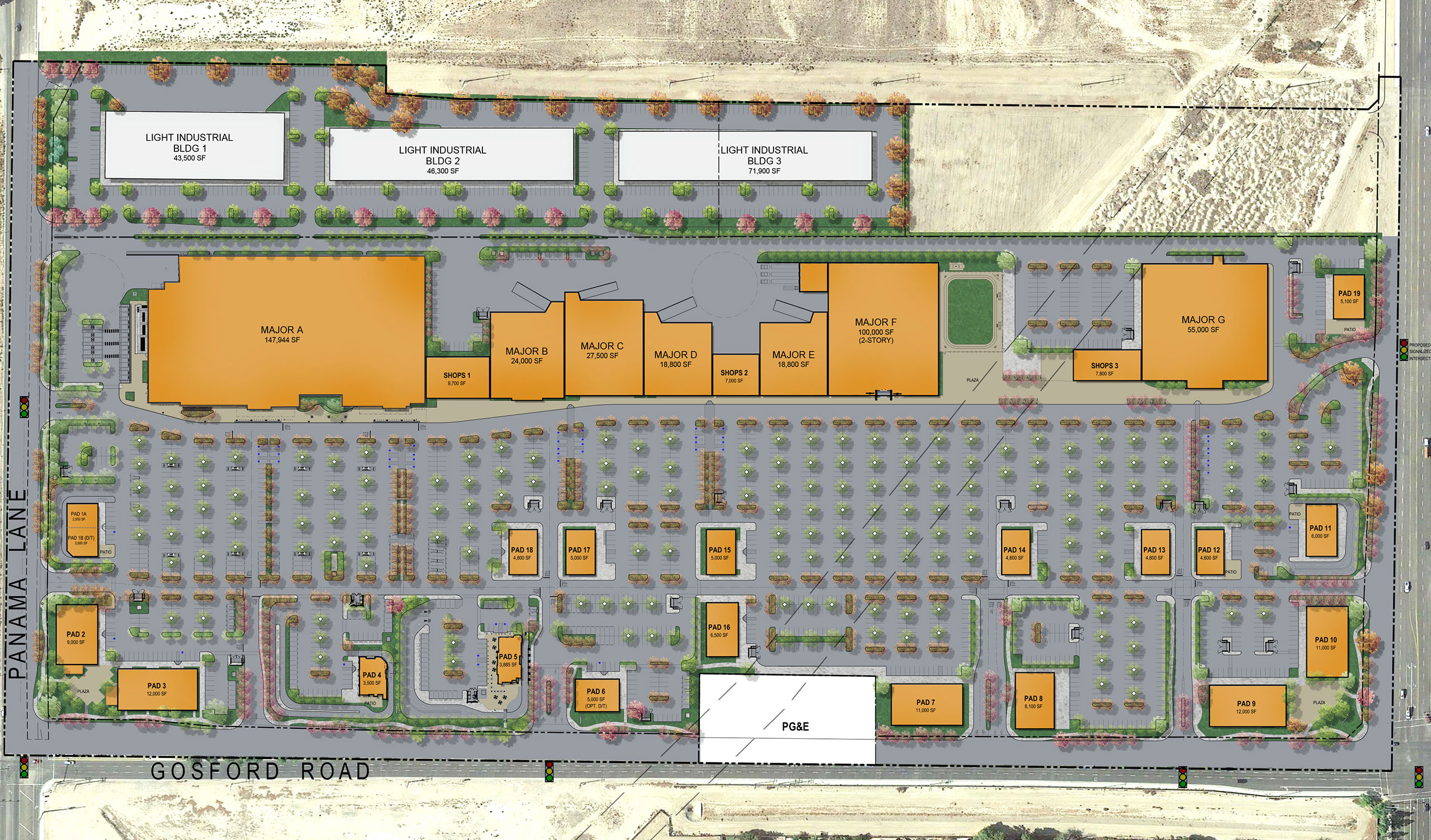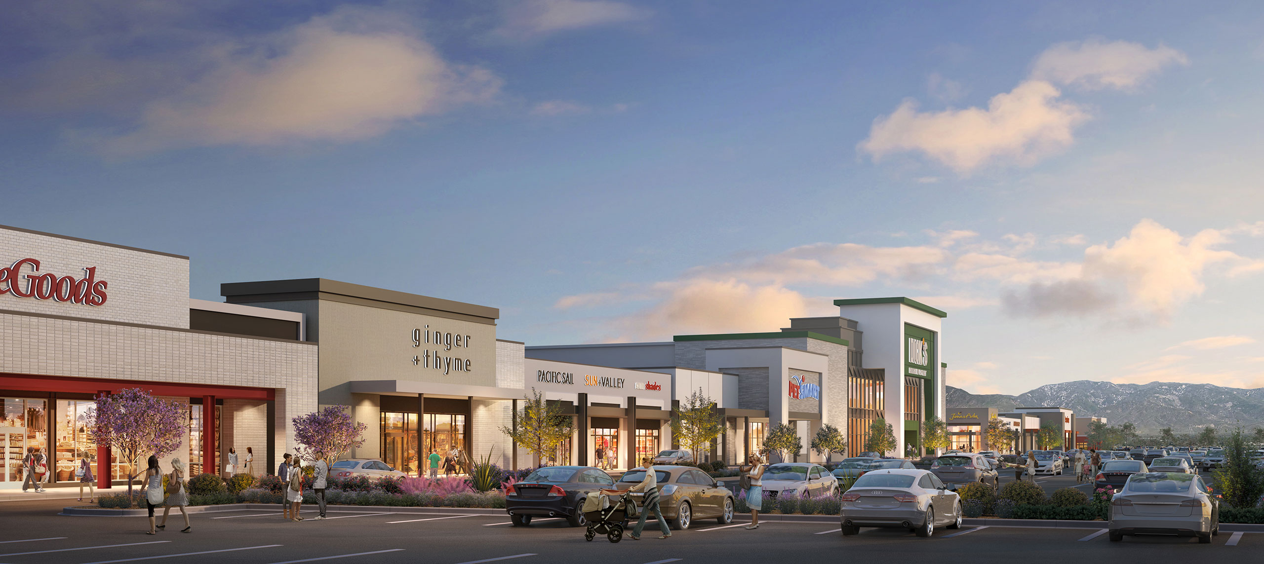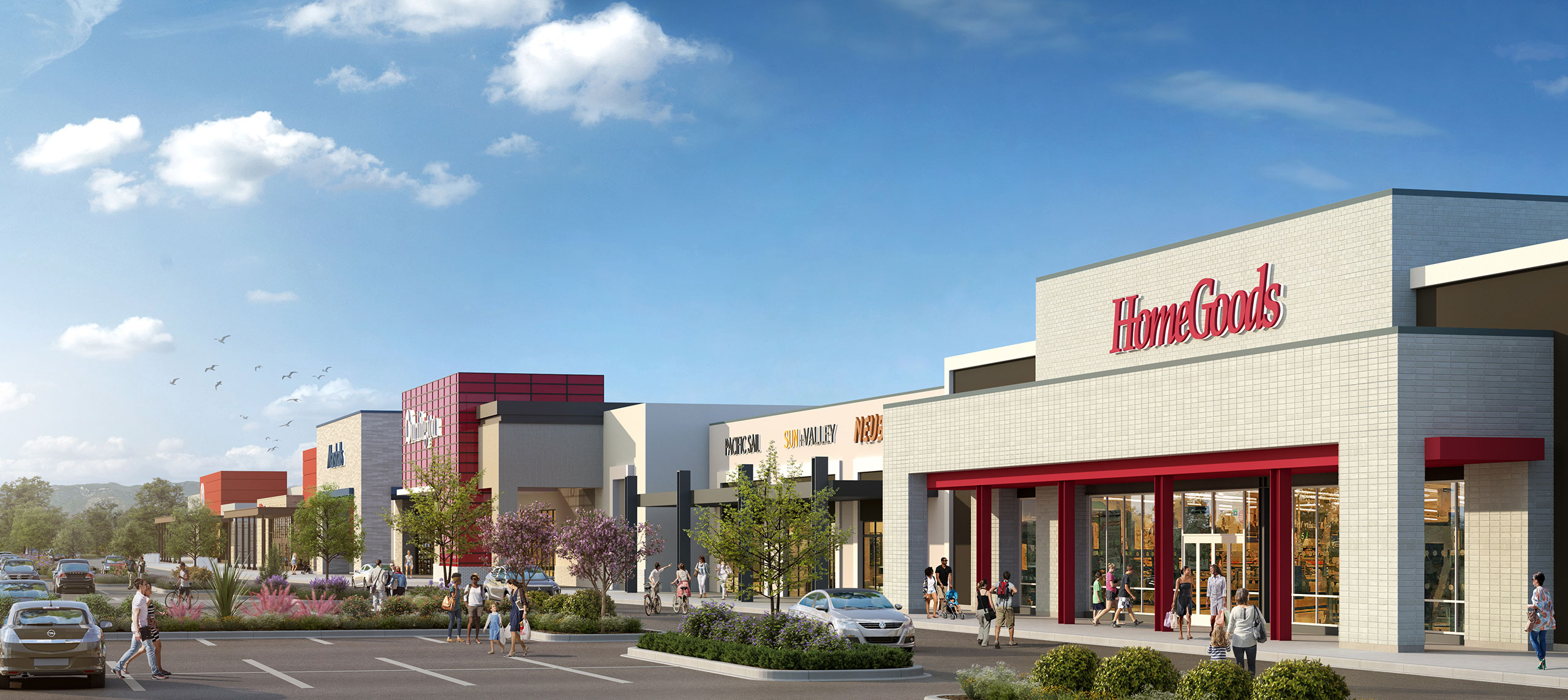 Rendering of Crossroads Plaza in Bakersfield, California.
