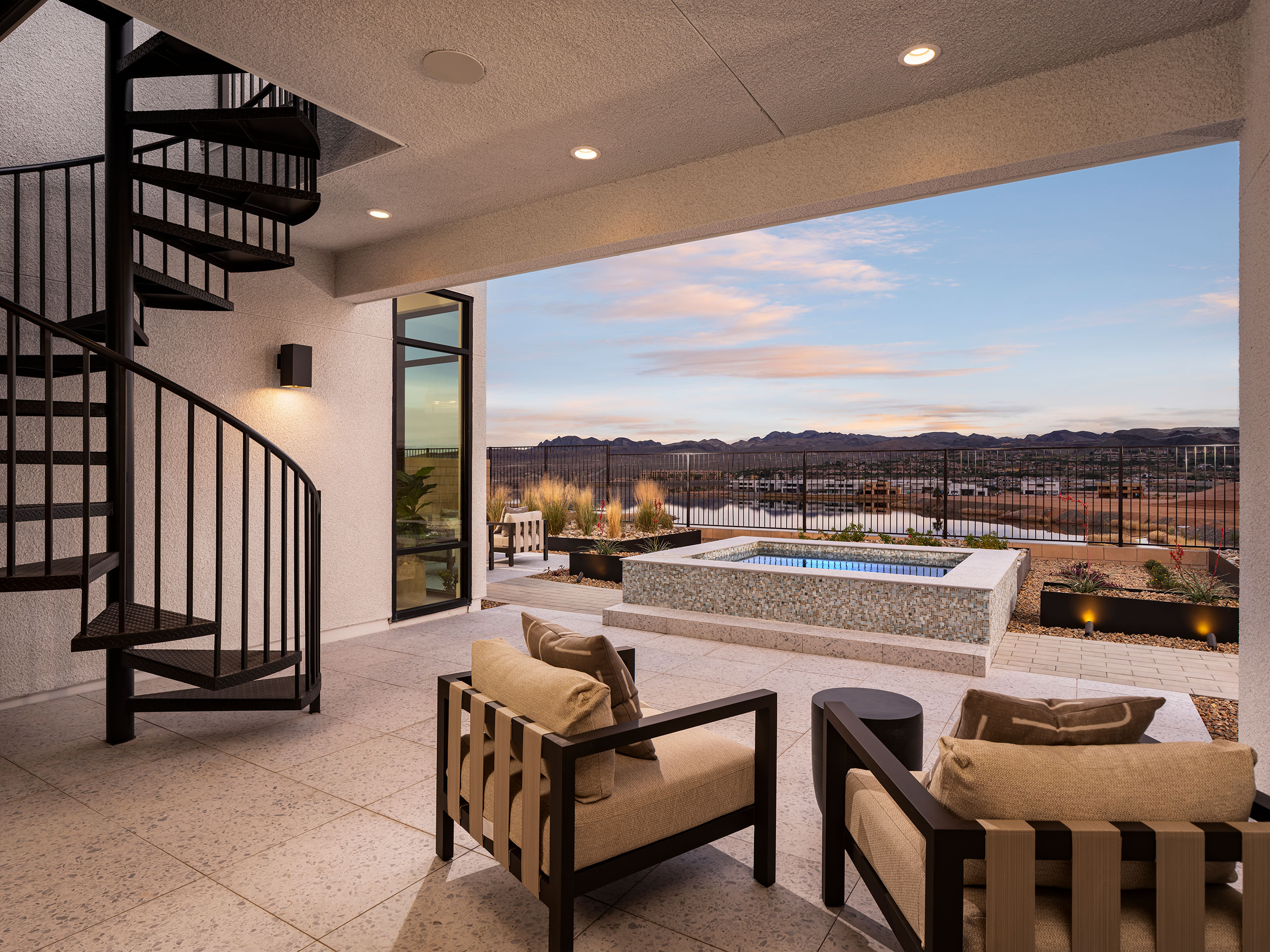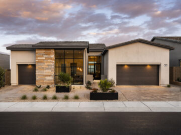 Incanta Lago, per the client’s objectives, offers the buyer a sense of individuality at production scale on the shores of Lake Las Vegas. The three floor plans each come in three architectural styles: modern, contemporary and mid-century. Material variations give each home personality, with a palette of ready-to-use materials combined and recombined in distinctive ways. Each design boasts an open-concept floor plan, high ceilings and large windows, creating open and light-filled interior spaces perfect for entertaining or relaxing with the family.
