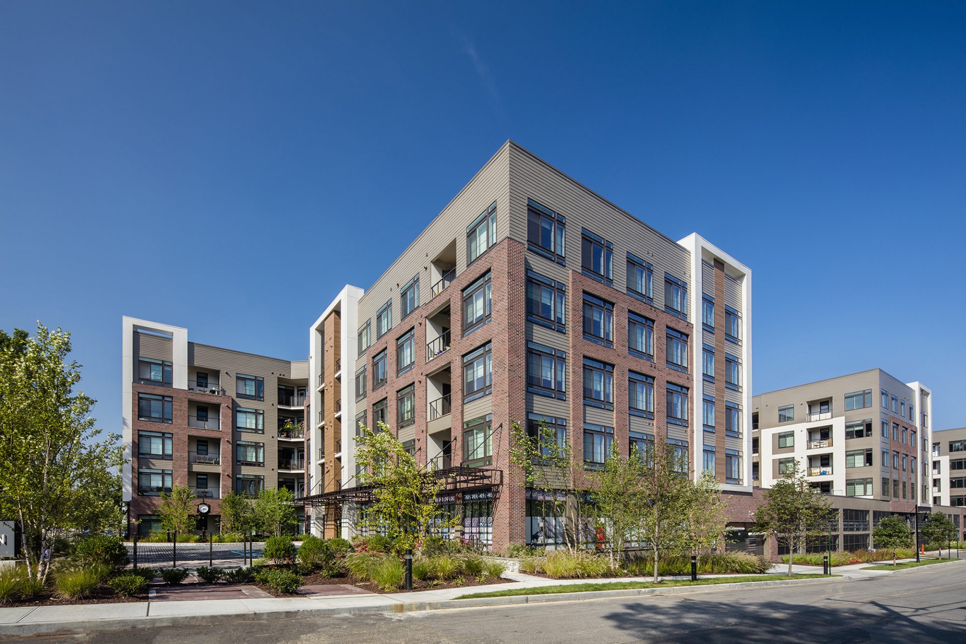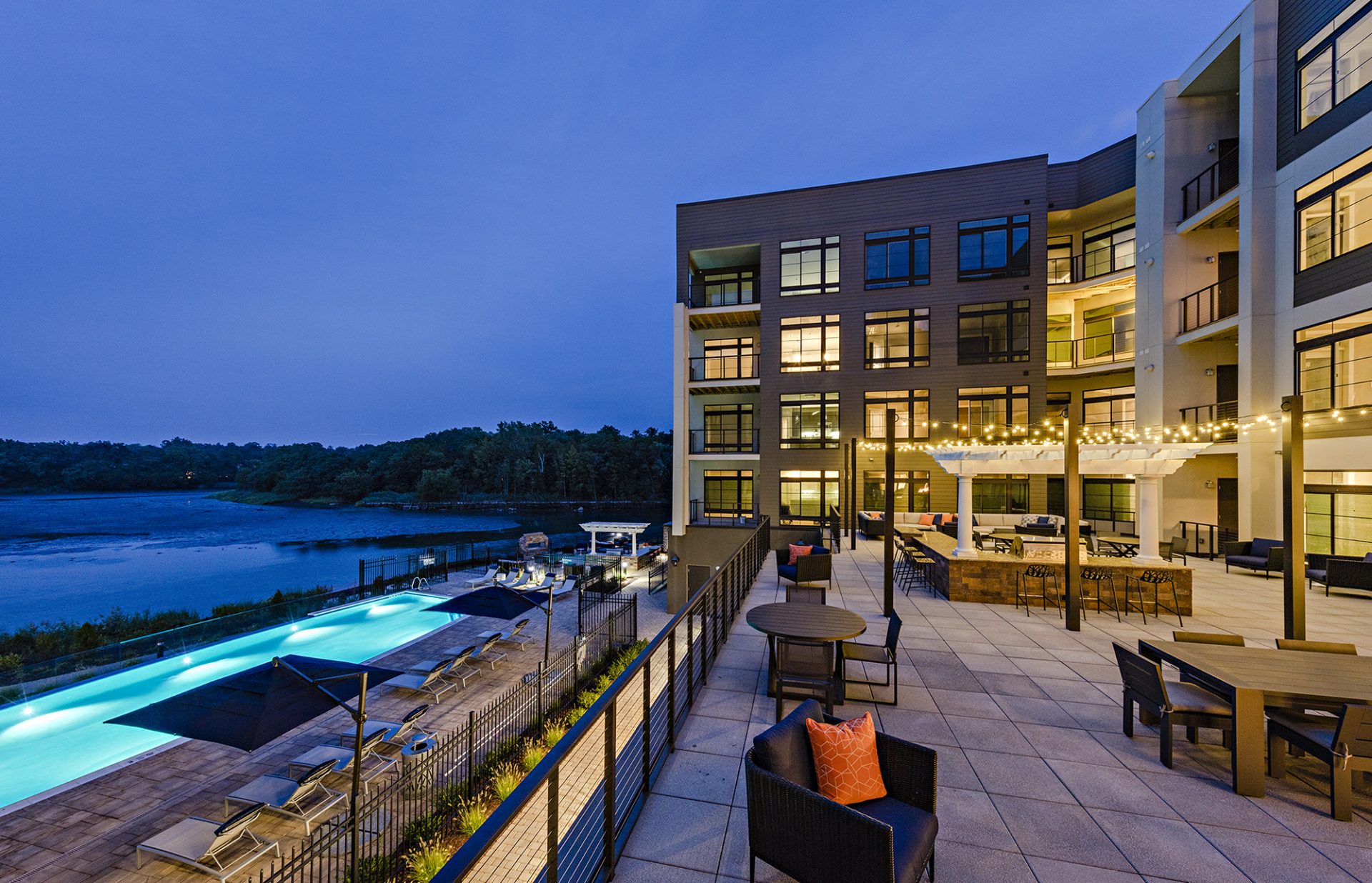 A remarkable waterfront community, Avalon Great Neck is located on the edge of an established, affluent New York City bedroom community on an existing brownfield coastline between East Shore Avenue and the south tip of Manhasset Bay in Great Neck, New York. This exciting, new multifamily residential development will bring vitality to the village of Great Neck and serve as the catalyst for the renovation and conversion of this stretch of industrial and brownfield sites into more residential and commercial uses along East Shore Road and the coast. The new 191-unit building features a series of open courtyards built on top of a two-level concrete podium structure. The front of the building is articulated as an “L” shape court that creates a front parking and reception space for residents, with a full glass facade and large metal canopy framing the main lobby on the ground floor. The architecture, which is inspired by warehouse and loft structures, has a strong and repetitive rhythm of brick facades with large openings and grid type windows, which is the base layer for the elevation. Community amenities include a fitness center, yoga/training room, clubroom, indoor/outdoor dining room, outdoor bar with grills, pool deck with cabanas, a dog park and a rooftop terrace.