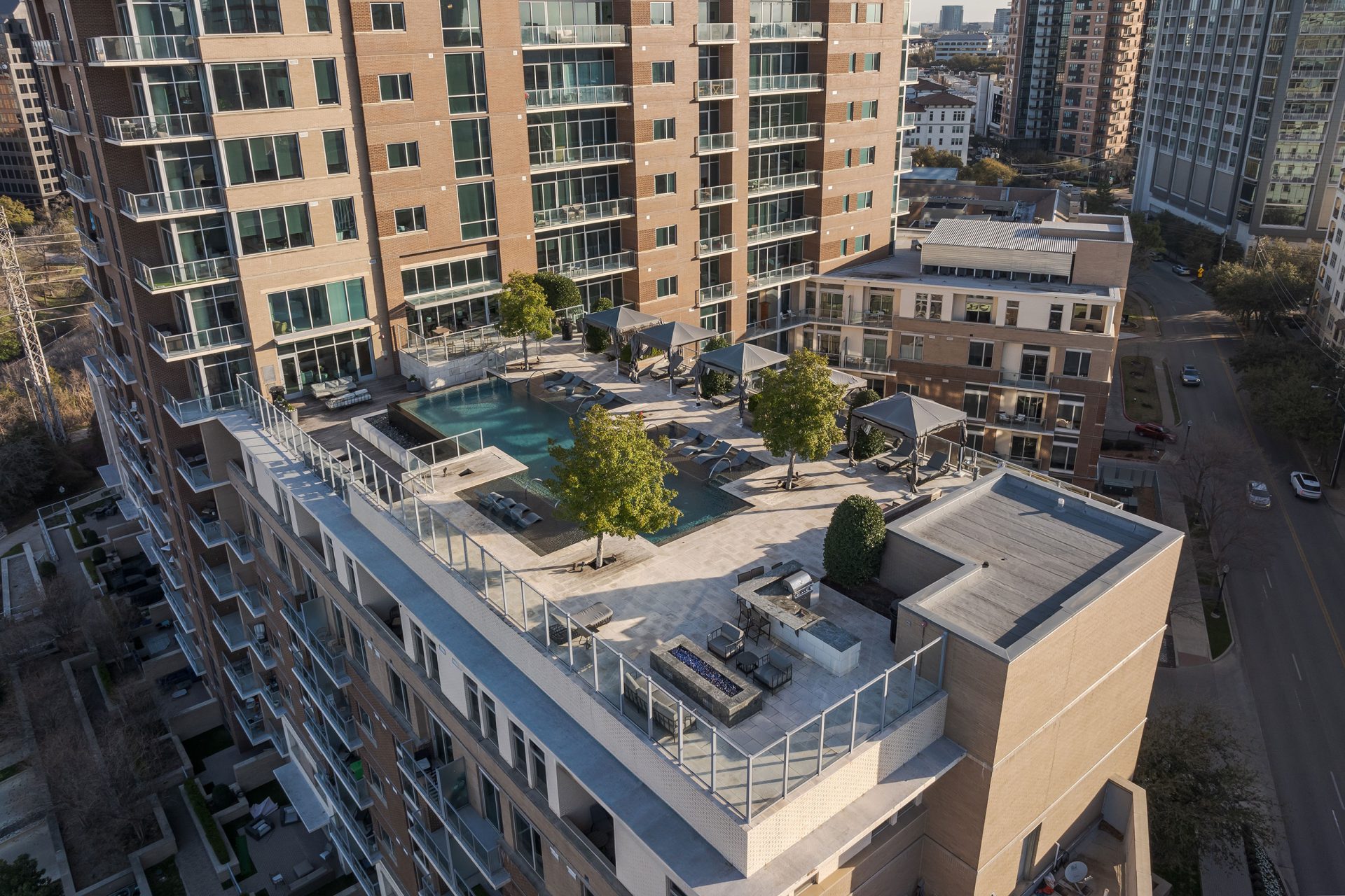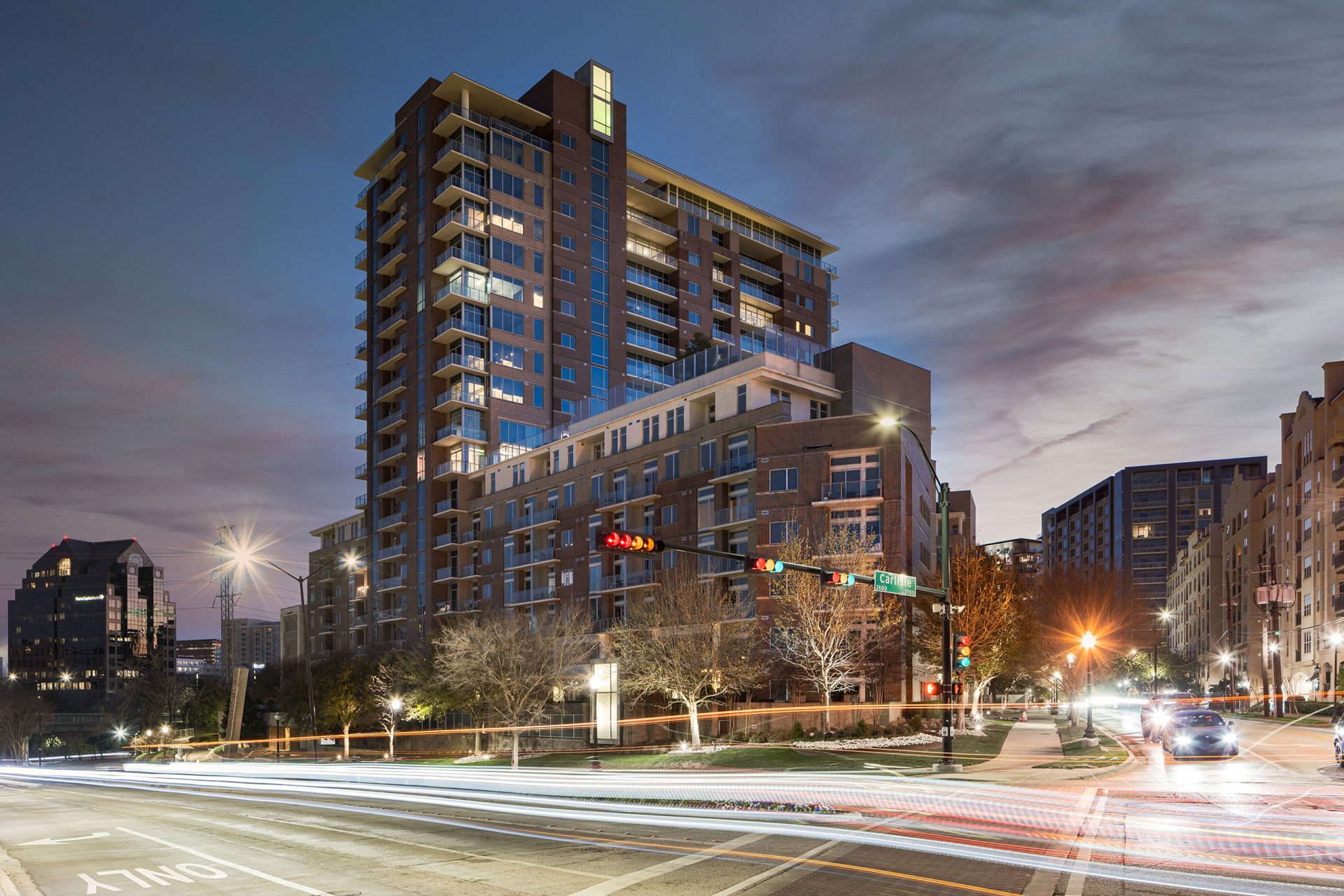 Rising from the intersection of two bustling streets in Dallas, Texas, and adjacent to the area’s iconic Katy Trail, the Brady provides residents with luxury living, iconic views, and access to nature. This site posed serval opportunities for our designers to innovate. By establishing a below grade parking structure and a V-shaped building that steps down to the street, designers were able to take advantage of the natural amenity and create a breezeway that leads from the trail to the lobby. This exclusive connectivity makes The Brady standout in the market.