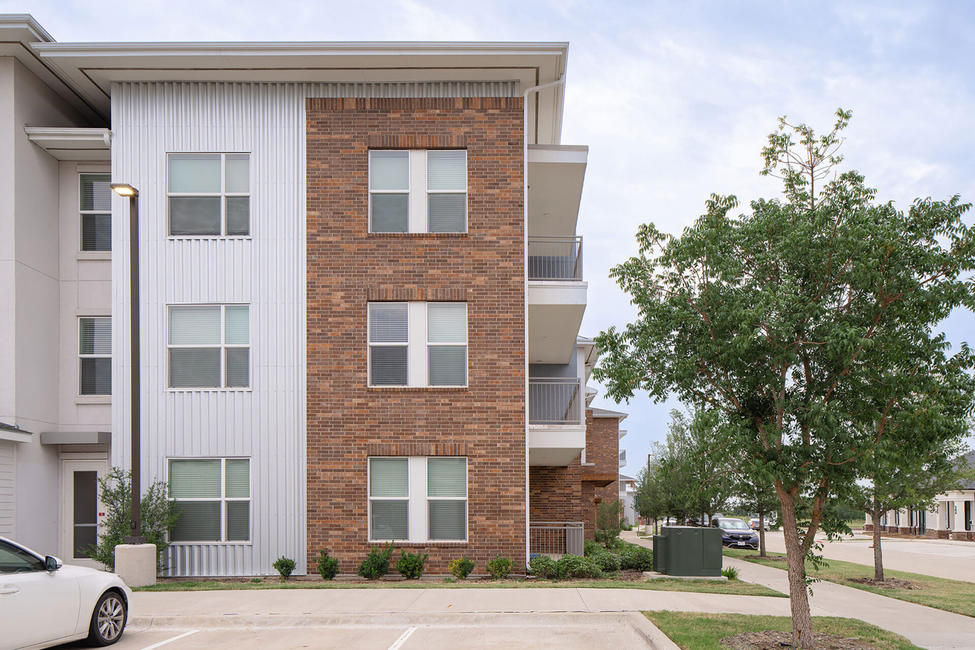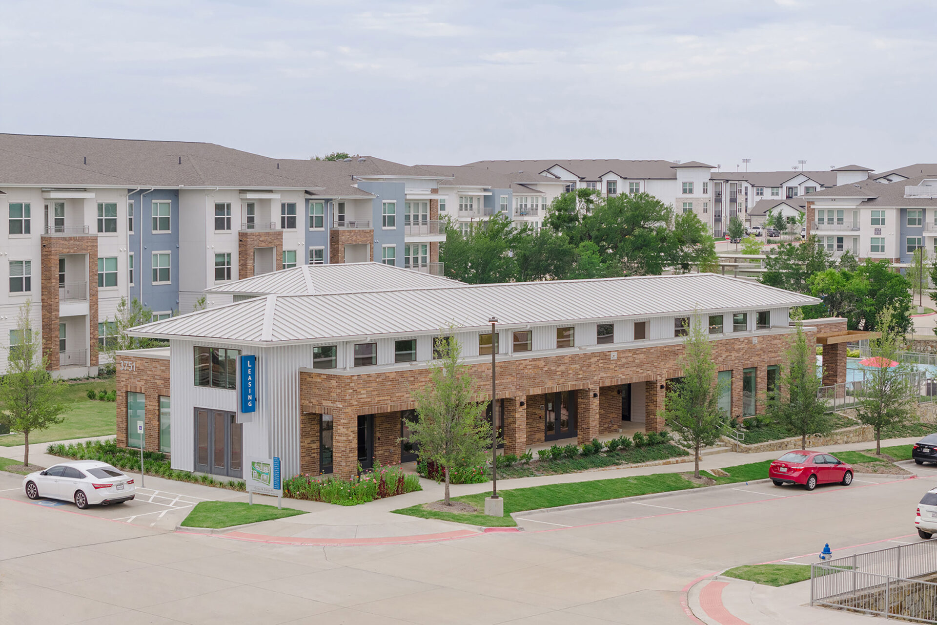 Collin Square is an eight-building complex of garden walkups that creates a welcoming retreat on a site featuring protected creek beds and open, green spaces in McKinney, Texas. Internal gathering places and amenities concentrate around natural features, and the designers tie this community with connections through the site and to the adjacent planned retail center.