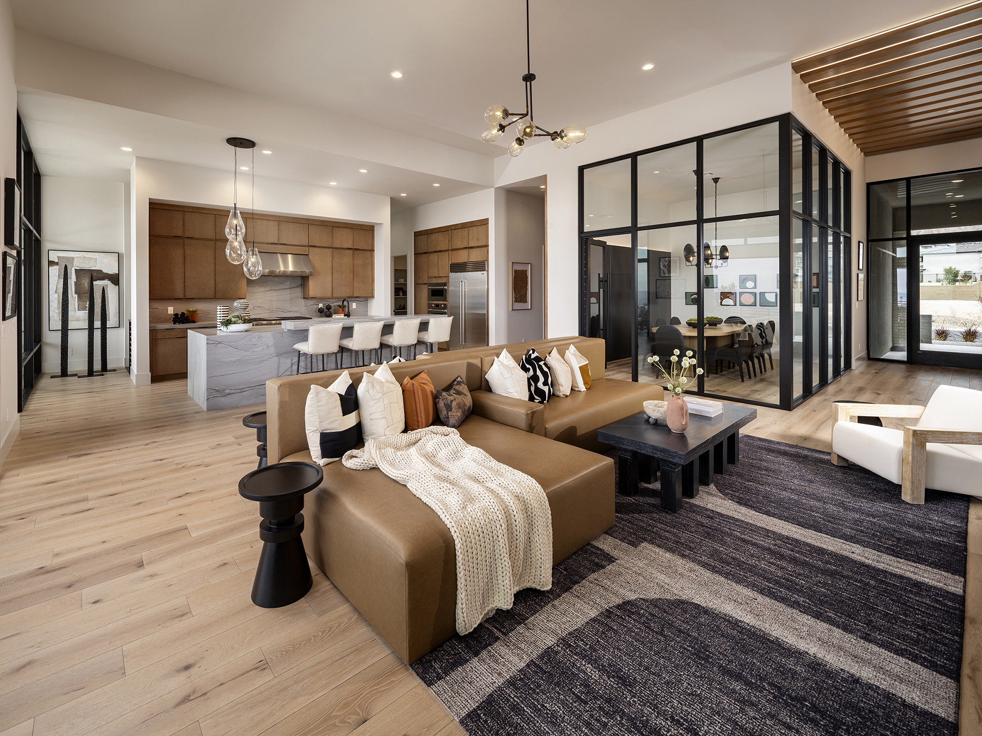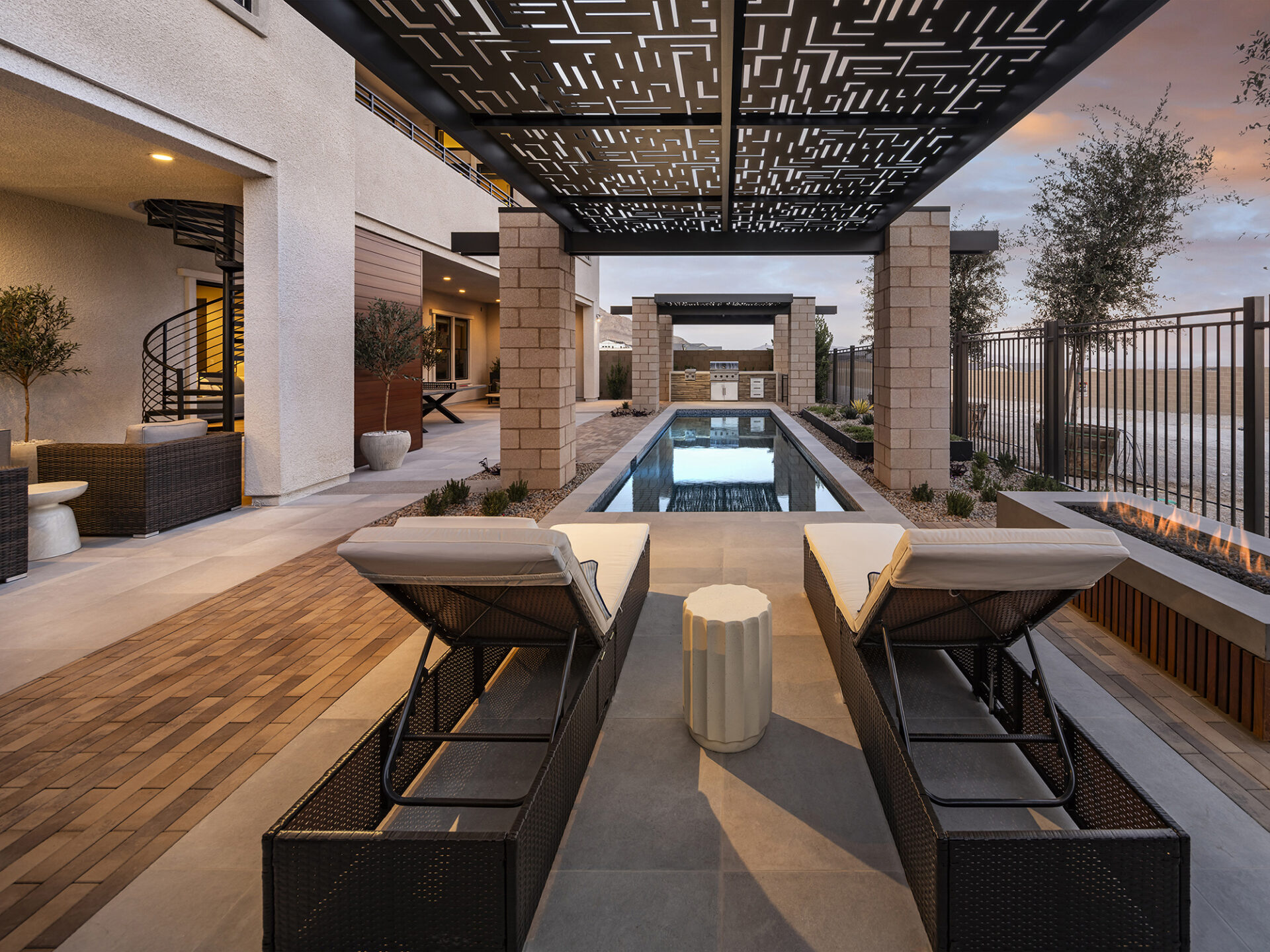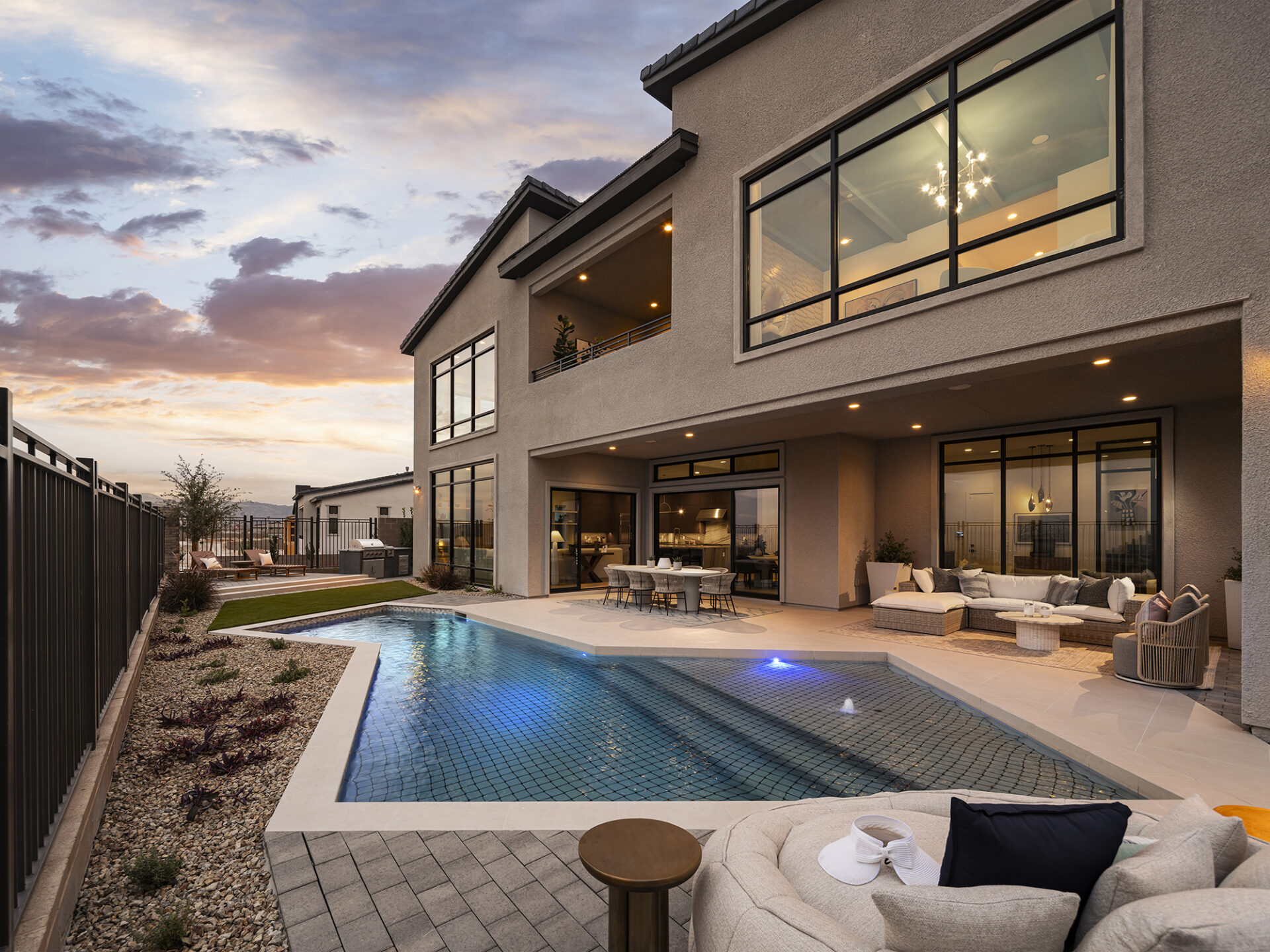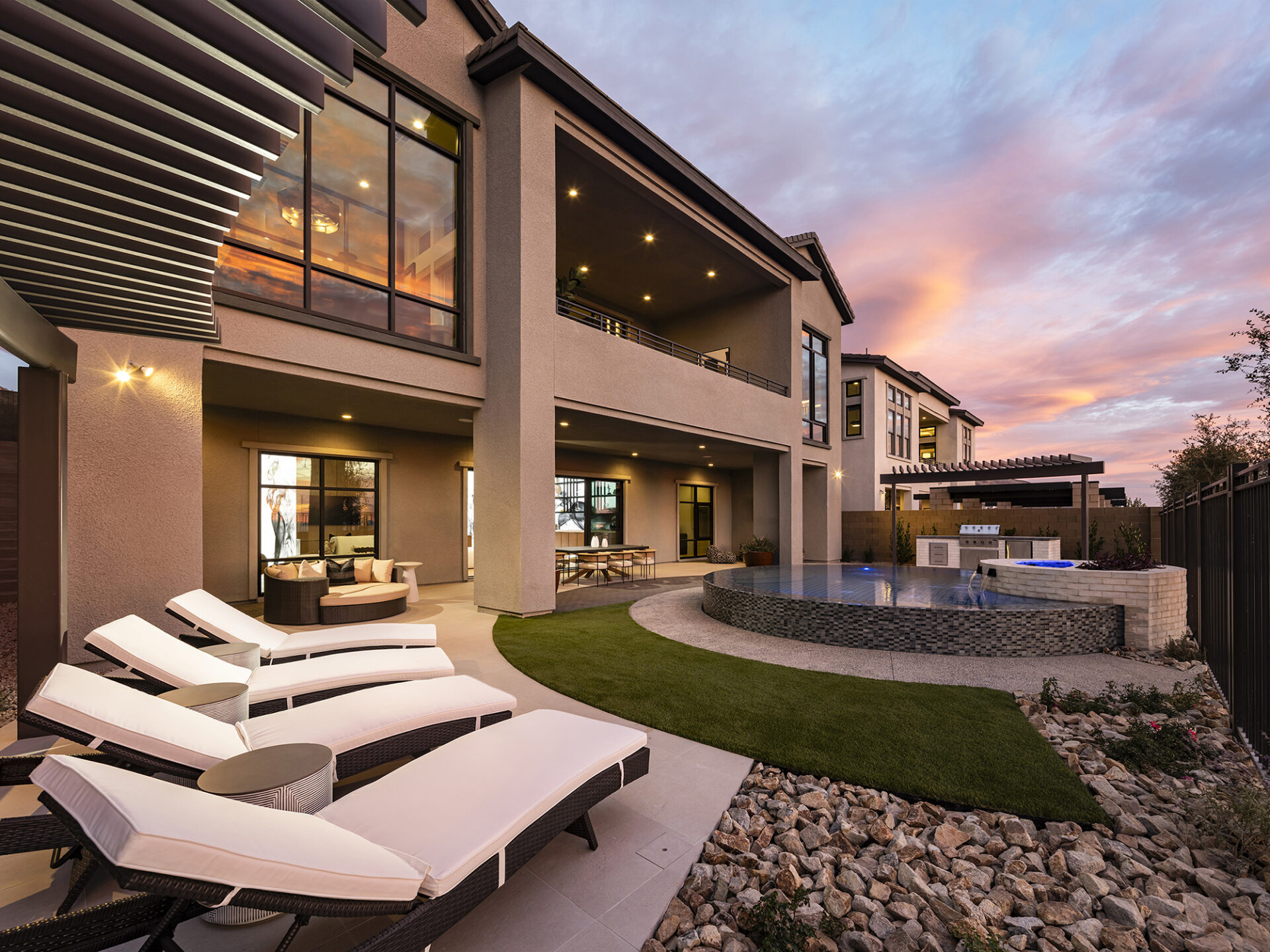 The success of Glenrock is in design that pushes luxury and customization to a rare degree for production home design. In this desirable suburb nestled against the La Madre Mountains, our team, worked collaboratively with our client to create designer-appointed homes with an impressive breadth of ready-to-build options evoking a custom-built experience at an economic scale. Large floor plans and sweeping views are just the standard features for homes targeted to high end buyers looking to see a different side of Las Vegas.