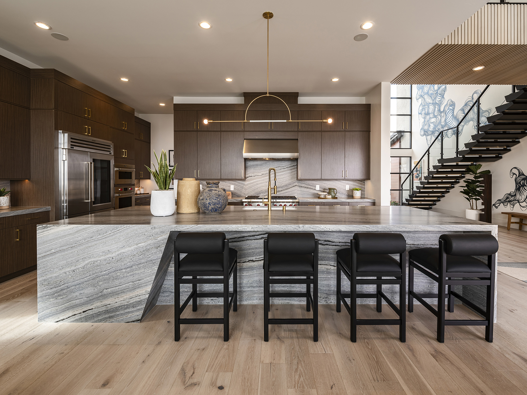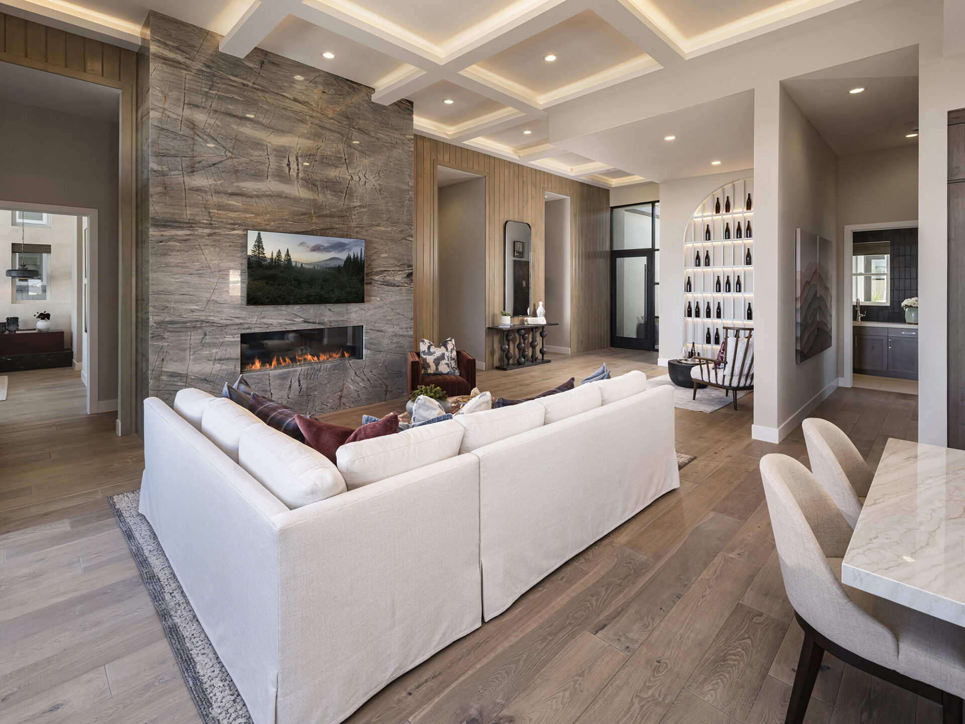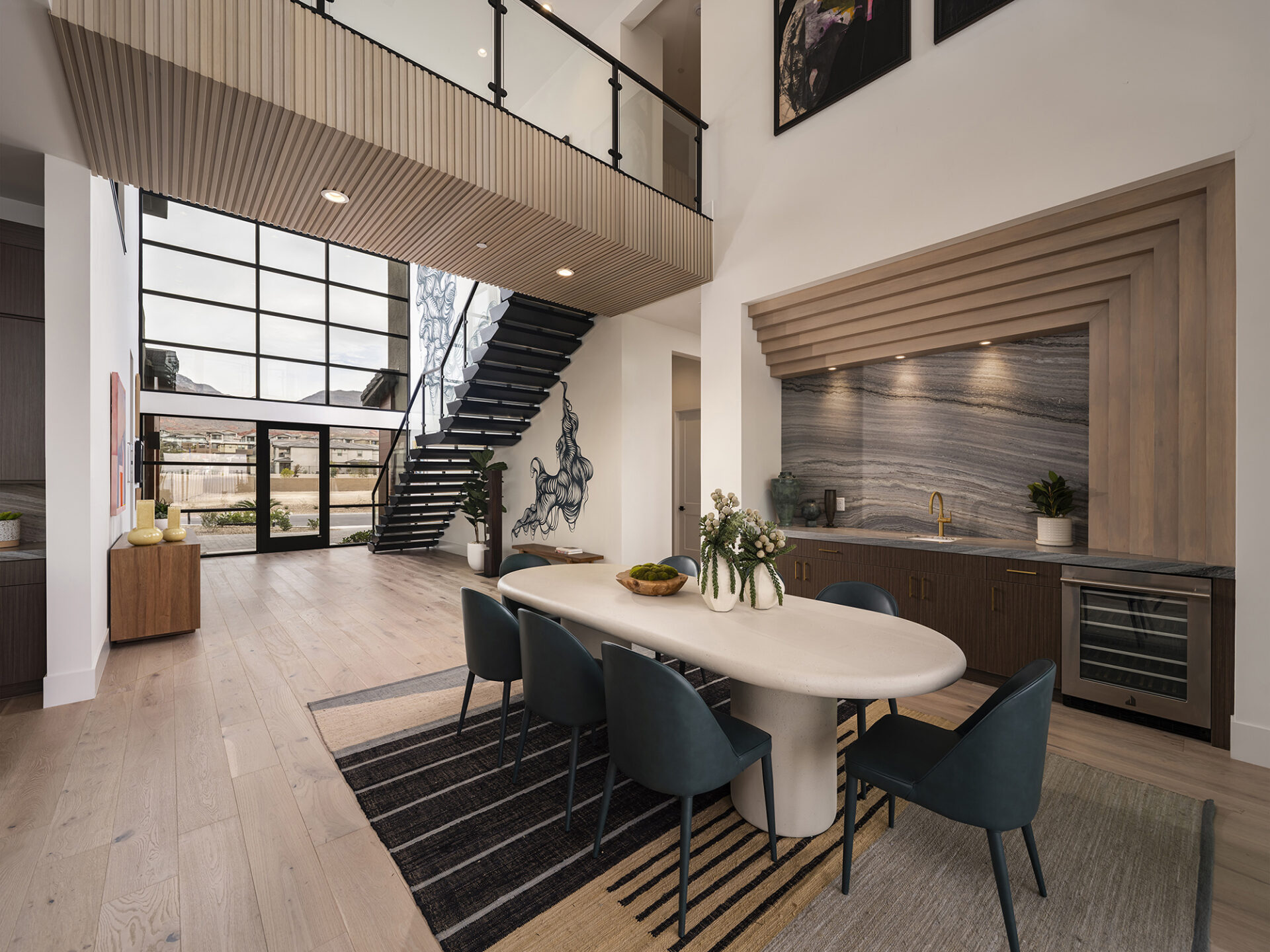 With experience from the design of several Summerlin developments, our team effectively navigated community guidelines and fielded requests from the review committee in finalizing previously entitled designs. Glenrock is built into a foothill, with significant grade changes from lot to lot. Our designers make use of the grade to terrace some of the homes for walk out basements with stunning views. There are eight floor plans, each with three elevations and ready-to-build options like front and rear storefront windows, flex rooms, custom kitchens, great rooms and additional bathrooms. The new community takes advantage of access to a private park and shared amenities of the Grand Park Village master plan.