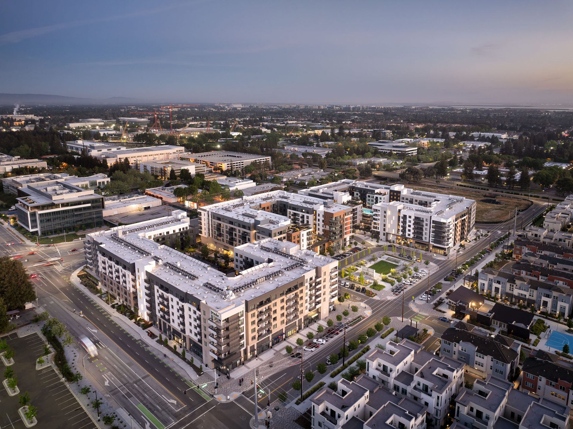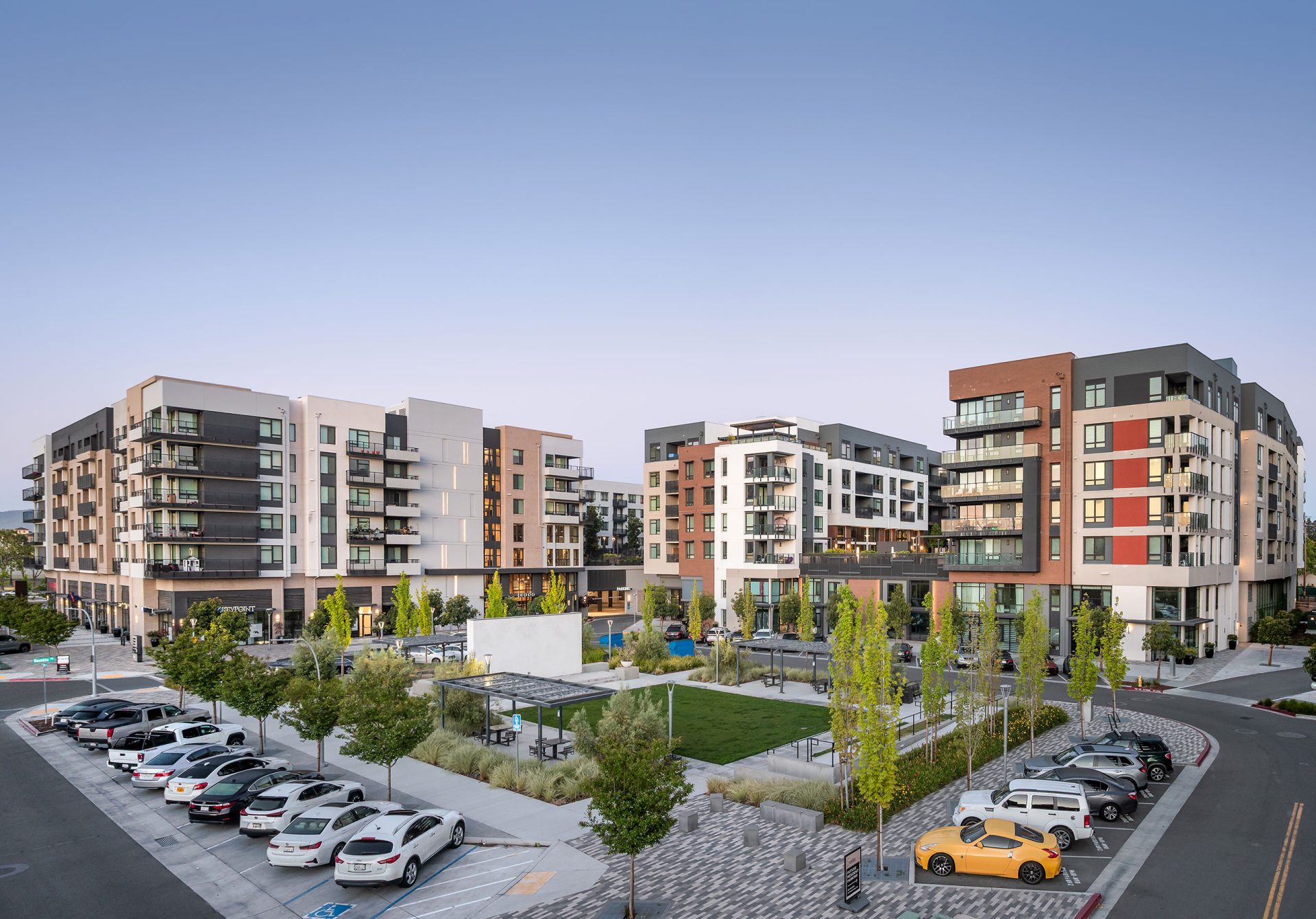On a site that was once home to one- and two-story industrial buildings, three high-density podium buildings are being constructed as part of phase I of the larger Nuevo master plan, and provide a mix of for-rent apartments, for-sale condominiums and over 24,000 square-feet of retail. Lawrence Station addresses the area’s housing shortage and lack of retail. Centered around a common open space park, the high-density podium buildings create an edge and shield the park from the noise of the main street. All three buildings feature a Contemporary design style with a mix of natural wood and stone elements. KTGY worked alongside the other architects of the master plan to ensure fluidity of design. The desire to create community influenced the amenities which include pool adjacent two-story fitness rooms and childcare centers. Nuevo also boasts a dog park, a bike-share facility, bike paths, sports courts, outdoor reading rooms and electrical vehicle chargers. Residents have easy access to the Lawrence Caltrain station, located just south of the site.