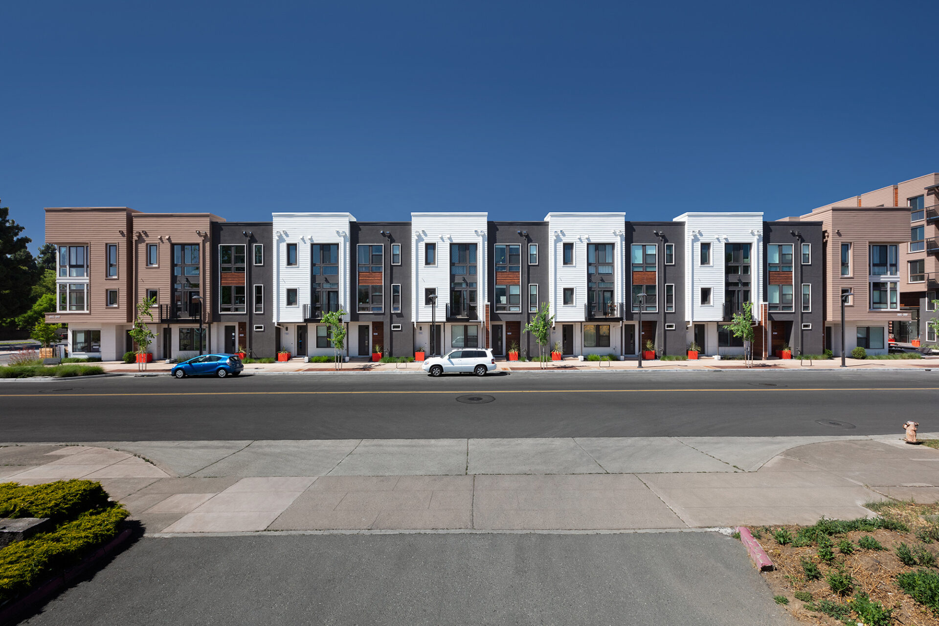 This mixed-use transit-oriented development represents the first buildings to be developed in the City of Fremont’s Downtown Revitalization Master Plan. Located within walking distance of the Fremont BART station, the development spans six acres and is divided into two parcels, each with a five-story podium building, a sixth level of underground garage and multiple on-grade rowhome buildings. At the front of the podium buildings, multiple retail spaces face Capitol Avenue. In the back, rowhome units are provided with their own private garage within the podium structure. On the upper levels, a mixture of stacked flats and three-story rowhomes will provide a variety of residential options ranging from one bedroom to four bedrooms. The character of the architecture and its details lean towards an urban aesthetic, reflecting upon the values and desires of this community.