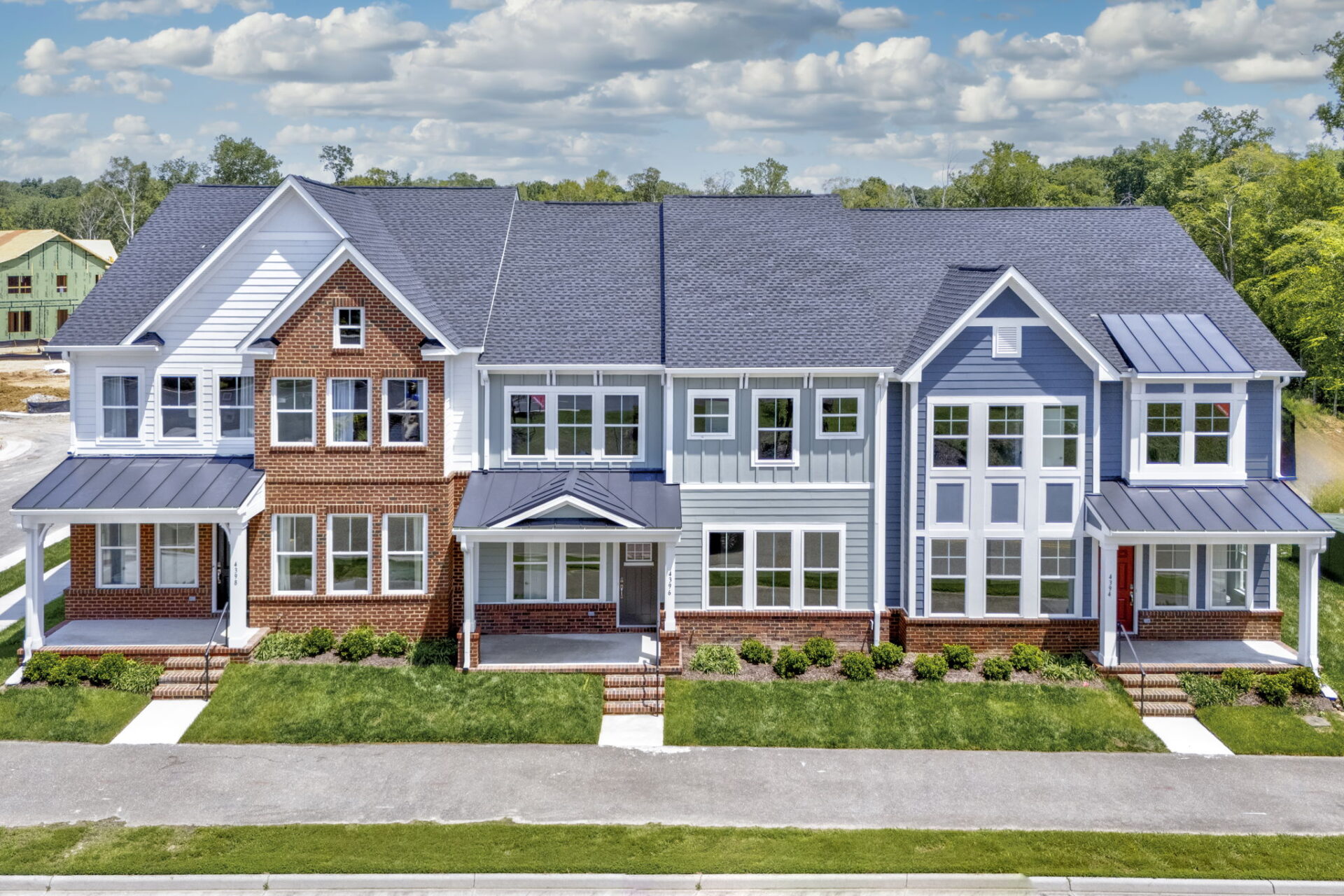 Williamsburg is a town steeped in history, and the design of Quarterpath at Tutter’s Pond is a fresh take on colonial aesthetics. Brick and shiplap siding feature in each design, aligning with local design guidelines, but modern window mullions and vertical siding update this style. Adaptation to site conditions produced three distinct footprints across four homes, with variations between having basements, slab on grade, side entry, front entry and a rear load garage. Our designers had to adapt each footprint to comply with site conditions and brick water table requirements. This contextual approach reflects the designers’ commitment to artful, quality home design that blends with the built, natural and historical environment.