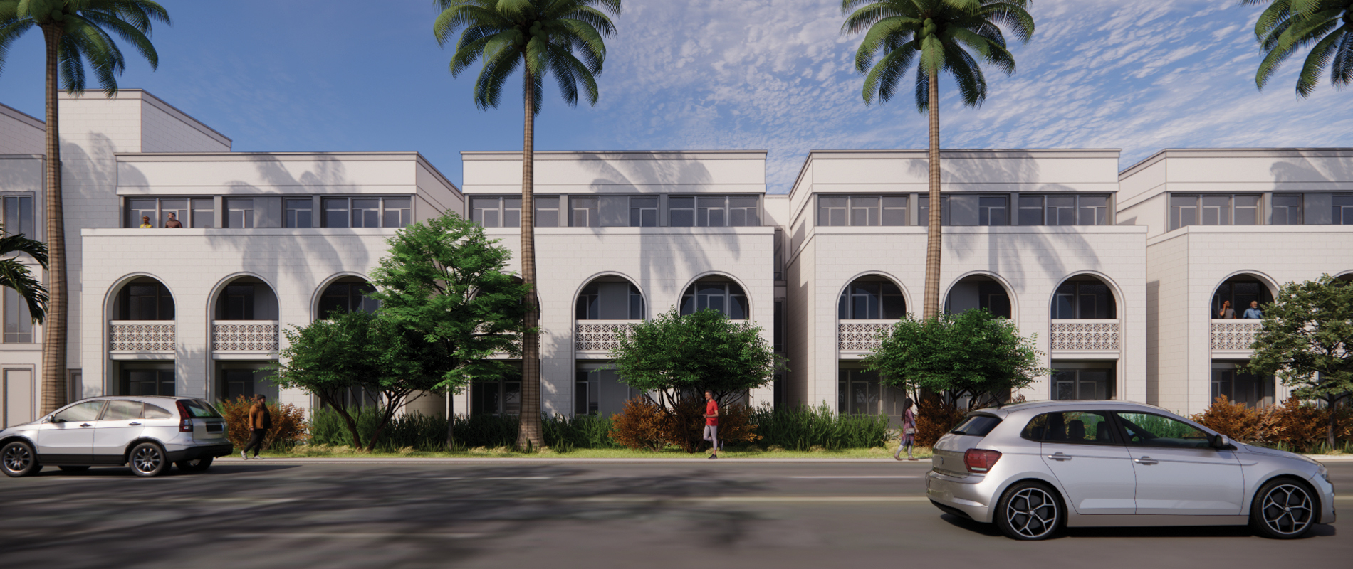 While often associated with smaller units, modular multifamily design, whether using wood or steel modules, offers broad flexibility in layout and aesthetics. Premium exterior finishes, added balconies, and other specialty detailing contribute to high-quality design, even within the modular framework. Introducing small separations between every three to four modules helps to break up long facades and reinforces a contextual relationship with the surrounding neighborhood.