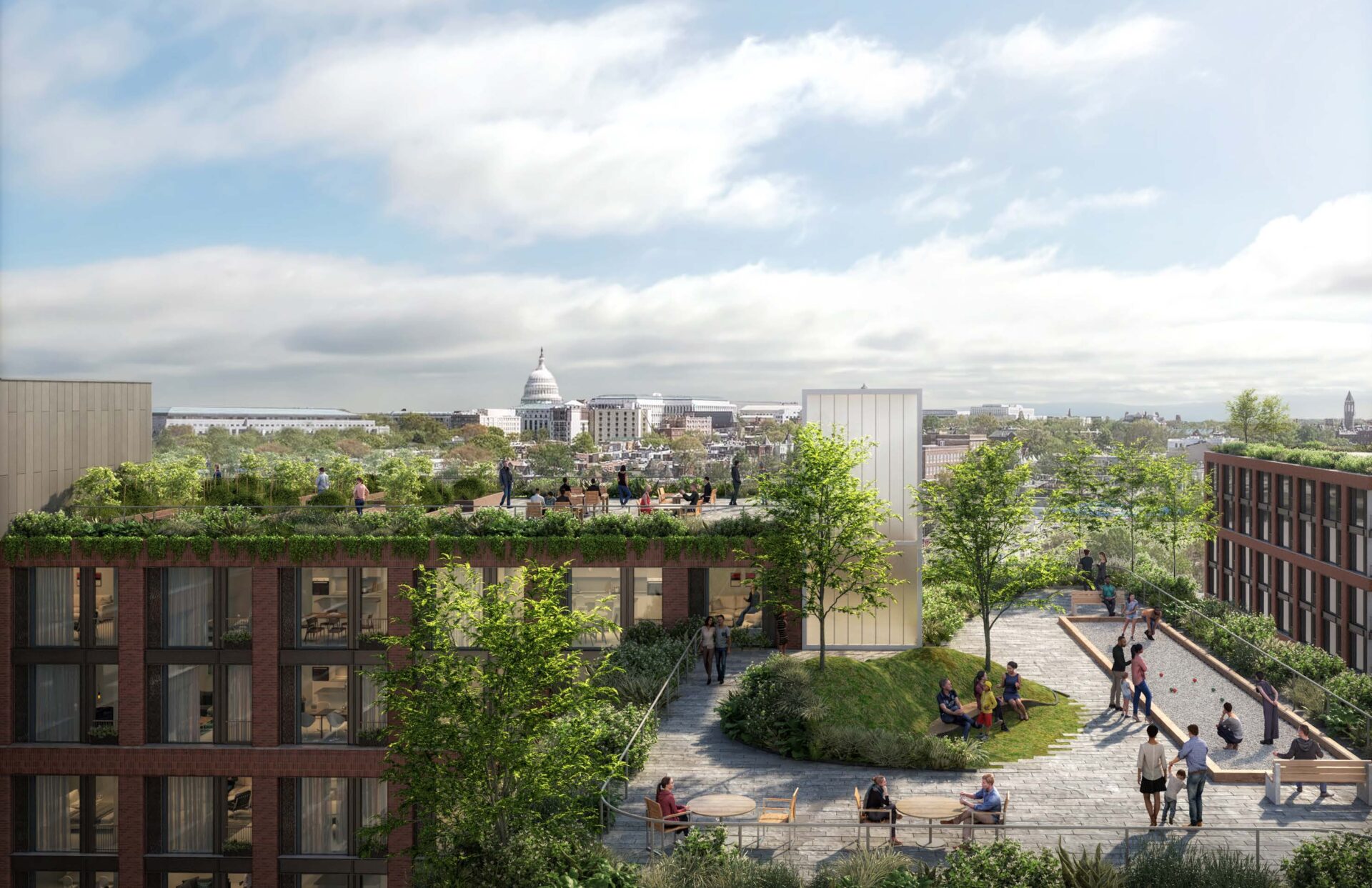 Sursum Corda brings stylish and luxurious city living to M Street and First Street in Washington, D.C. Designed with a traditional craftsman flair reminiscent of the industrial era, the character of this community contrasts with the typical cityscape and attracts visitors with 12,200 square-feet of retail space. Two levels of subterranean parking make this community easily accessible for guests and occupants alike. Residents may select from various unit sizes catering to their individual lifestyle ranging from 500 to 1,400 square-feet units with an additional 8,000 square-feet of amenities to enjoy. For those looking to live a particularly lavish city life, the 12th floor consists of a spacious penthouse with rooftop terraces and garden areas designed to provide the ultimate living experience. These terraces are laid out in a stepping pattern allowing natural light into the central courtyards of the buildings, which creates a peaceful ambiance amid the vibrant bustle of the city.