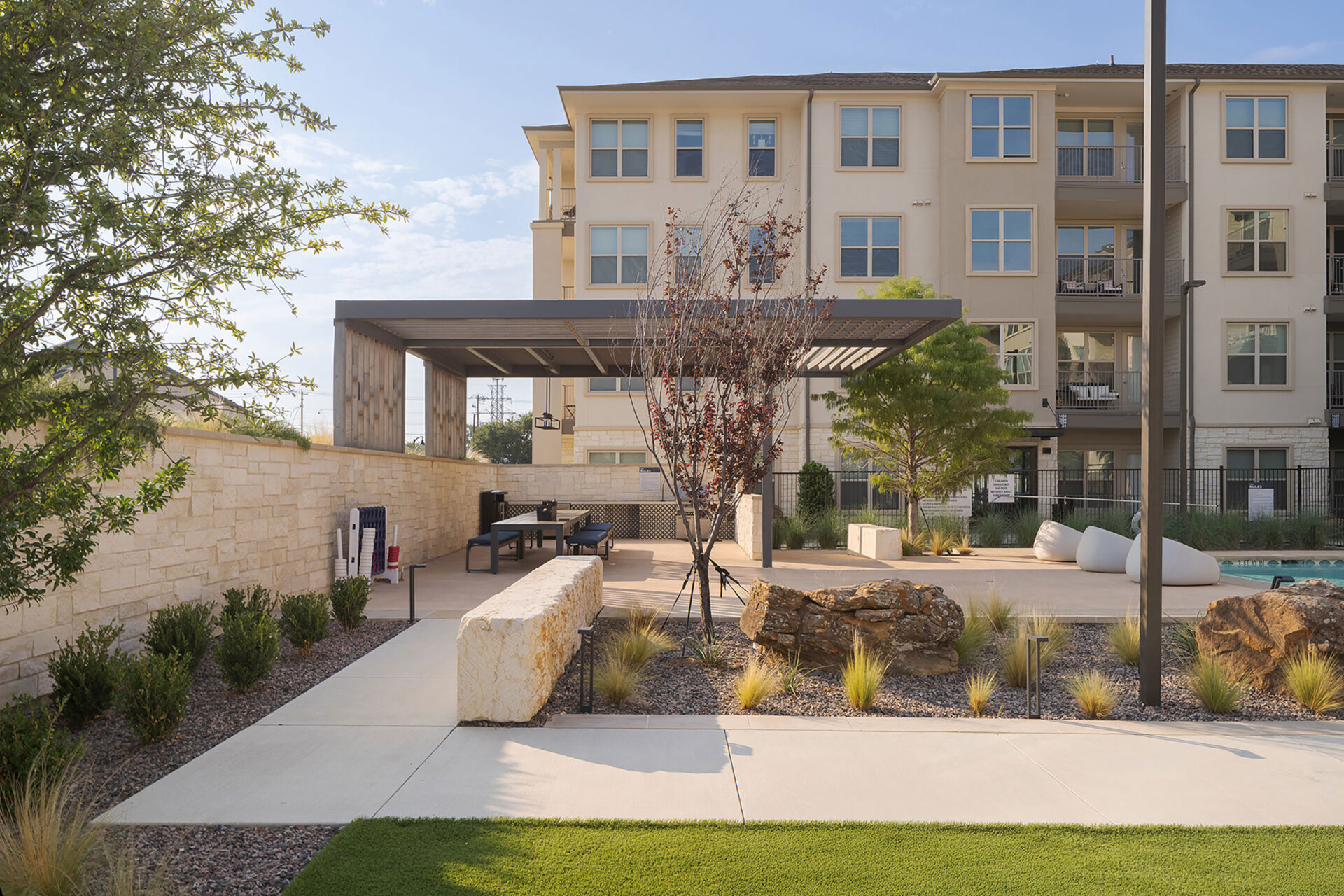 Located in North Richland Hills, one of the most desirable mid-cities in Texas, The Delegate is an ambitious walkup community filling a large gap in this small city’s master plan. Consisting of seven buildings including townhomes, apartments and amenities, the seven-acre site is an attractive update of garden walkup design and takes full advantage of access to City Point, the sprawling and exciting new mixed use hub.