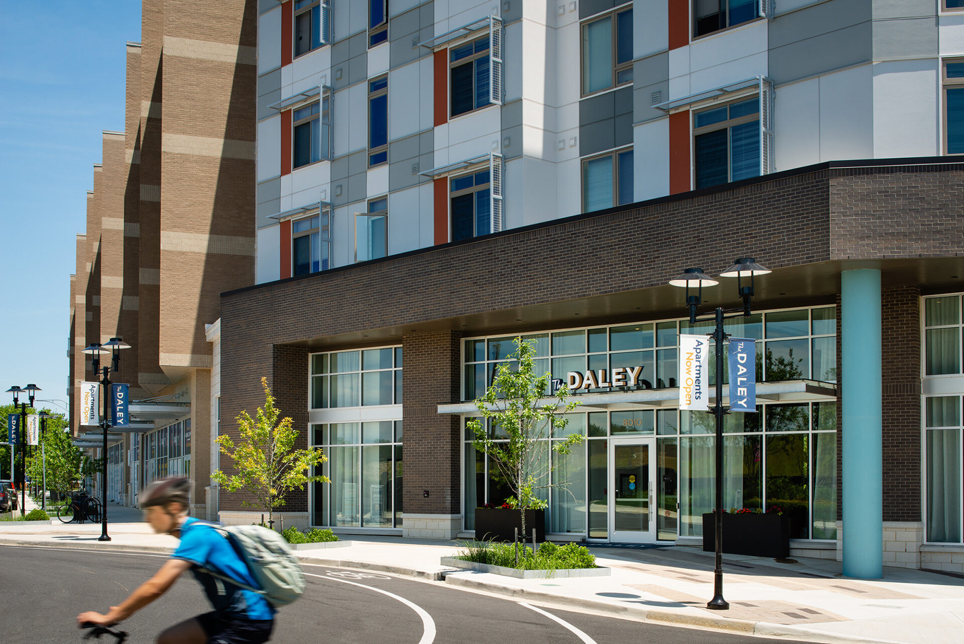 Westside at Shady Grove Metro transforms a 90-acre industrial park into a T.O.D mixed-use development featuring residential and retail space located near the Shady Grove Station for the Metro Red Line in Rockville, MD. Phase one of this urban village features a four-building 1,100-unit multifamily community with 46,000 square feet of neighborhood retail on the ground floor plus 24,000 square feet of integral leasing/management and amenity spaces. Each residential building is supported by an adjacent above grade open parking garage, totaling more than 1,700 parking spaces. This master planned project expands the community by four times allowing for the development of a new elementary school, a 200-unit condominium community, a 150,000 square foot office building and 800 townhomes.