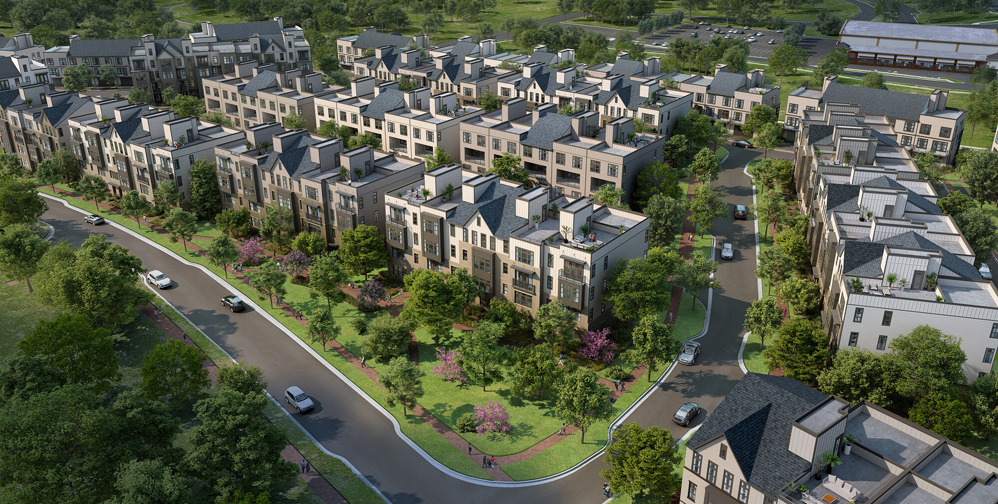 At Aire at Westchester in Midlothian, Va., rooftop terraces on flat roofs are a response to increasing demand for outdoor space in high-density housing projects.